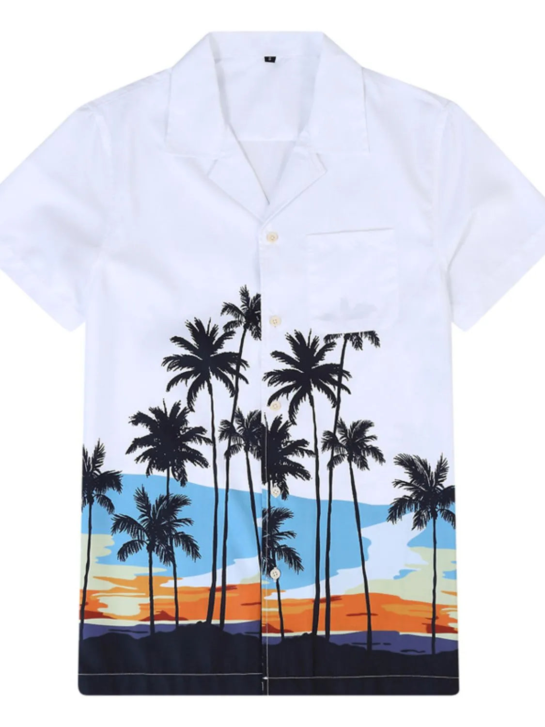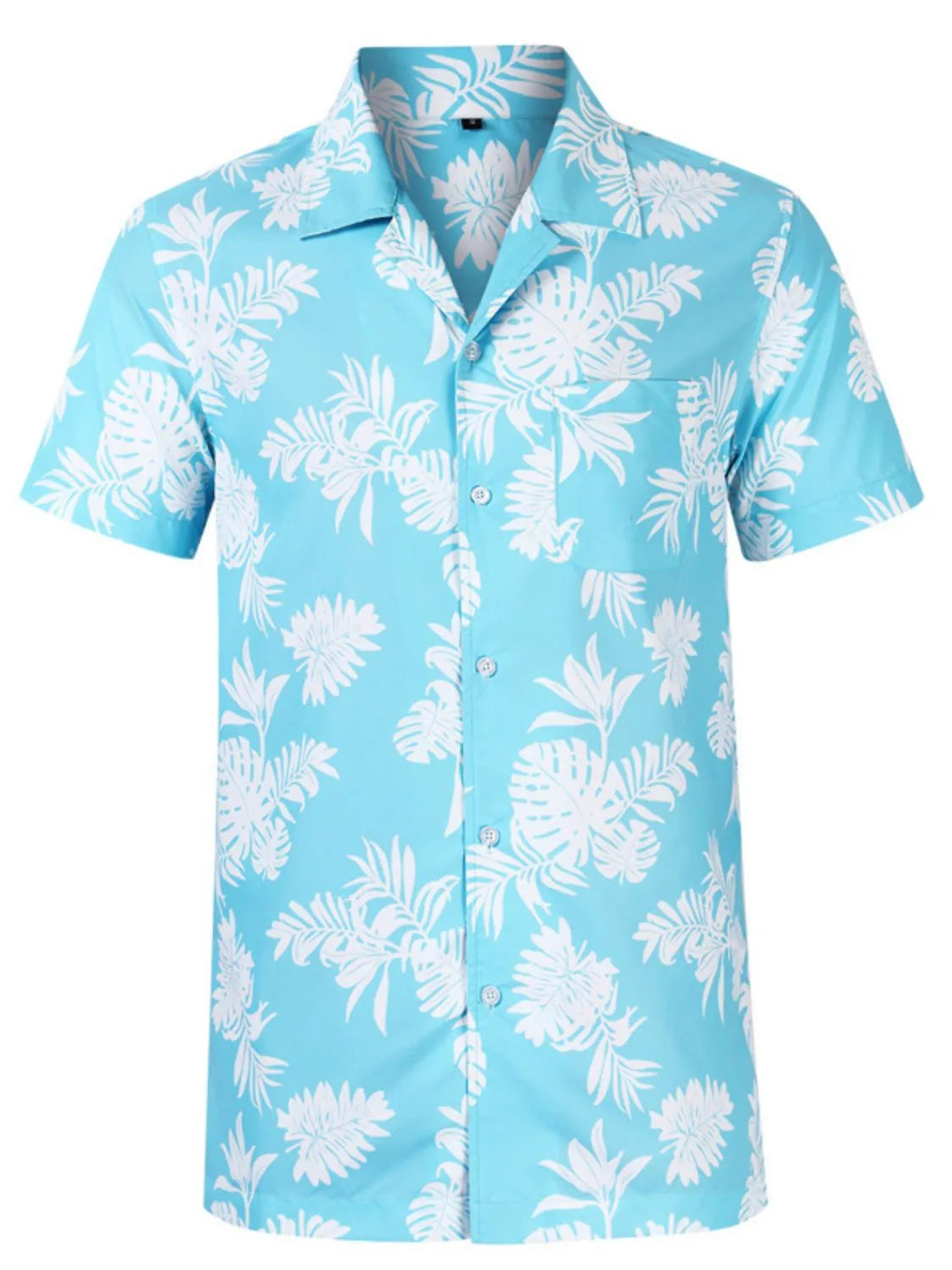 Men's Hawaiian Print Short Sleeve Button Down Shirt