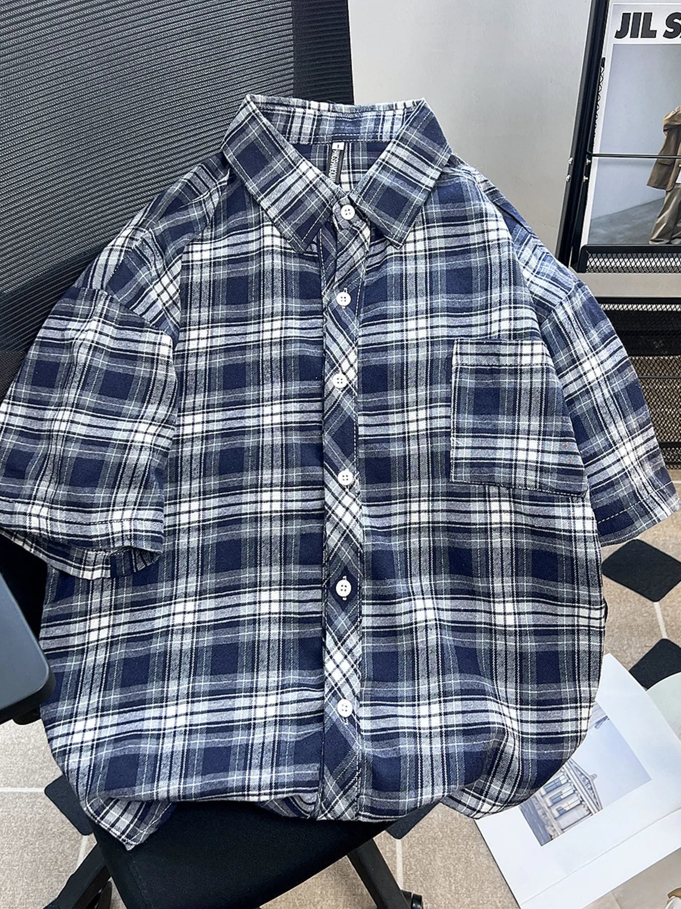 Men’s Blue Plaid Short Sleeve Button Shirt. This men's short sleeve button shirt blends timeless style with everyday comfort. Featuring a classic blue plaid pattern, it offers a versatile look that works for both casual outings and laid-back office days. The lightweight fabric ensures breathability, while the button-front design adds a touch of structure. A relaxed fit and neatly tailored sleeves make it easy to wear on its own or layered over a tee. Whether paired with jeans, chinos, or shorts, this shirt delivers effortless style with a rugged edge